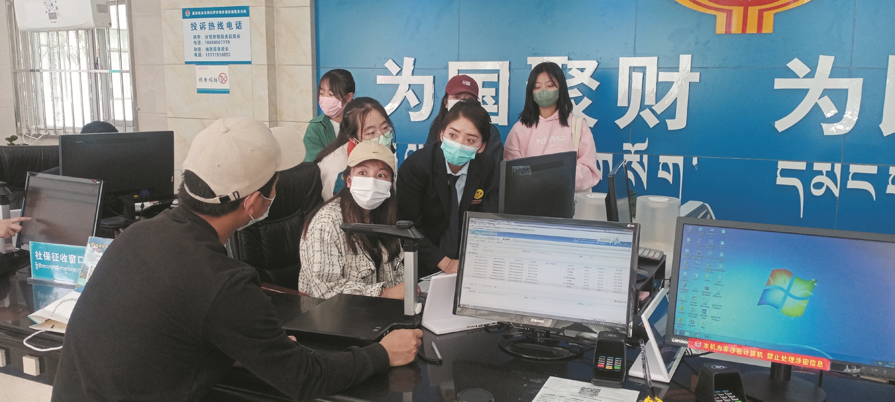 辦稅服務(wù)廳設(shè)有導(dǎo)稅咨詢區(qū)、自助辦稅區(qū)、等候休息區(qū)和辦稅服務(wù)區(qū)。在自助辦稅區(qū)現(xiàn)場(chǎng),設(shè)有外網(wǎng)電腦,同時(shí)還配備專人現(xiàn)場(chǎng)輔導(dǎo)納稅人使用電子稅務(wù)局等平臺(tái)操作辦稅,解答納稅人關(guān)于個(gè)稅的疑問(wèn)。全新的辦稅服務(wù)廳及完善的服務(wù)設(shè)施,讓大學(xué)生們真正感受到了以納稅人為中心的服務(wù)理念。在工作人員的指導(dǎo)下,學(xué)生代表走進(jìn)自助辦稅區(qū),親自體驗(yàn)“辦稅人”角色,了解辦稅廳各窗口、功能區(qū)的職能作用和業(yè)務(wù)種類。據(jù)工作人員介紹,辦稅服務(wù)廳還通過(guò)QQ群、微信群等線上工具為納稅人解答關(guān)于網(wǎng)上辦稅的操作問(wèn)題,滿足納稅人網(wǎng)上辦稅和足不出戶辦稅。西藏大學(xué)政法學(xué)院學(xué)生白斌瑜說(shuō):“在體驗(yàn)的過(guò)程中,我感受最多的還是辦稅的智能化和便捷化。”
