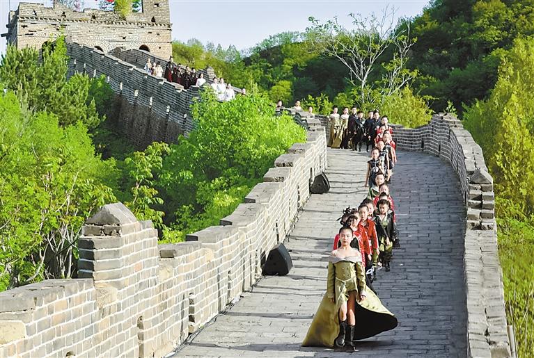塔耶梅朵美育培養(yǎng)中心的學員們在長城上走秀。