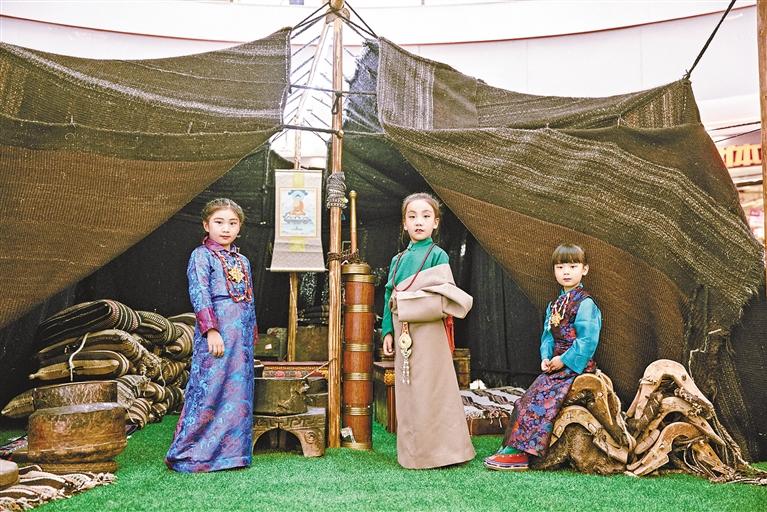小學員展示藏族特色傳統(tǒng)服飾。