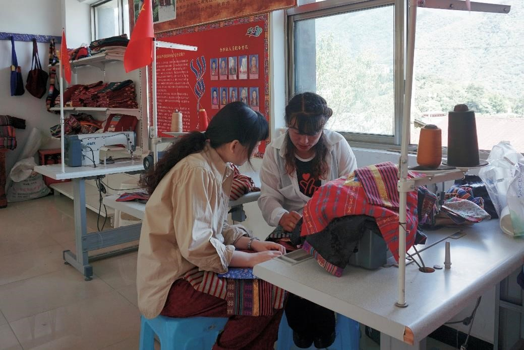 支隊(duì)成員向當(dāng)?shù)厝藢W(xué)習(xí)民族服裝制作工藝