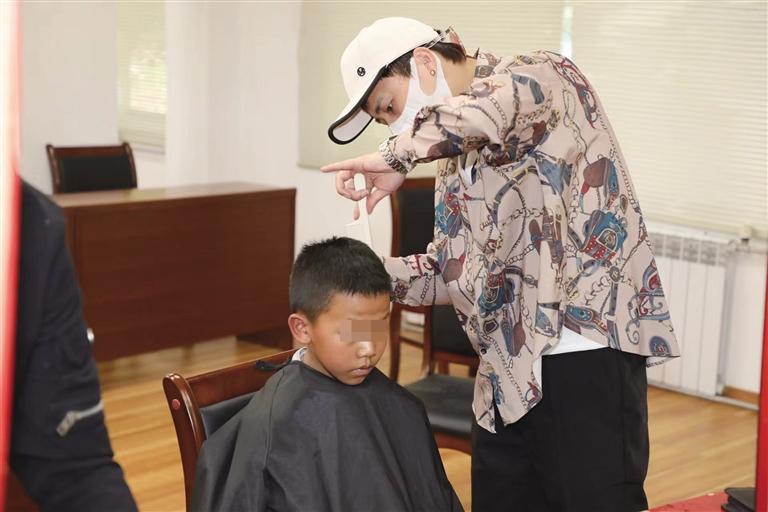 理發(fā)師為殘疾學(xué)生理發(fā)。圖由西藏阜康天使基金會提供
