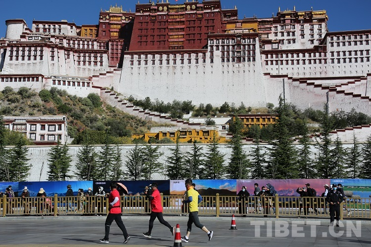 圖為2021年拉薩半程馬拉松選手經(jīng)過布達(dá)拉宮進(jìn)行最后的沖刺 攝影:王佳豪