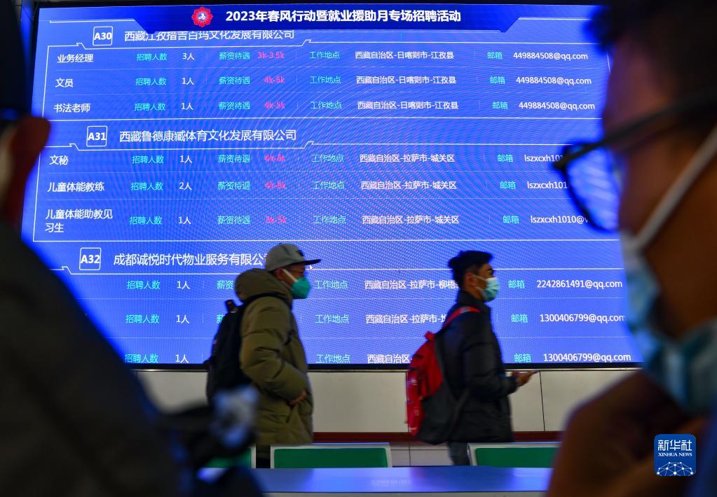 這是2月8日拍攝的西藏2023年“春風(fēng)行動”暨就業(yè)援助月招聘活動現(xiàn)場。新華社記者 晉美多吉 攝