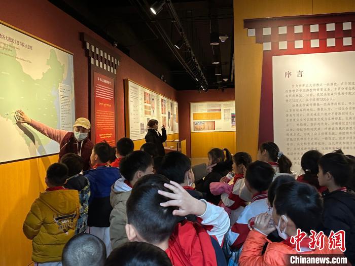 圖為活動(dòng)當(dāng)天西藏文化博物館的志愿者們帶領(lǐng)小朋友參觀館內(nèi)展覽?!±铌涎?攝