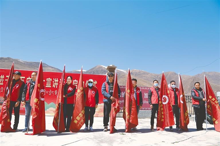 近日,在拉薩市墨竹工卡縣開展的“黨的二十大精神進(jìn)千家萬戶”大宣講活動(dòng)啟動(dòng)儀式上,墨竹工卡縣鄉(xiāng)鎮(zhèn)宣傳委員代表和村居農(nóng)牧民宣講員代表作了交流發(fā)言,相關(guān)工作人員為各鄉(xiāng)鎮(zhèn)和縣直部門理論政策宣講服務(wù)隊(duì)進(jìn)行了授旗,縣委黨校老師就如何扎實(shí)有效推動(dòng)黨的二十大精神和全國(guó)兩會(huì)精神在基層落地落實(shí)開展了宣講培訓(xùn)。