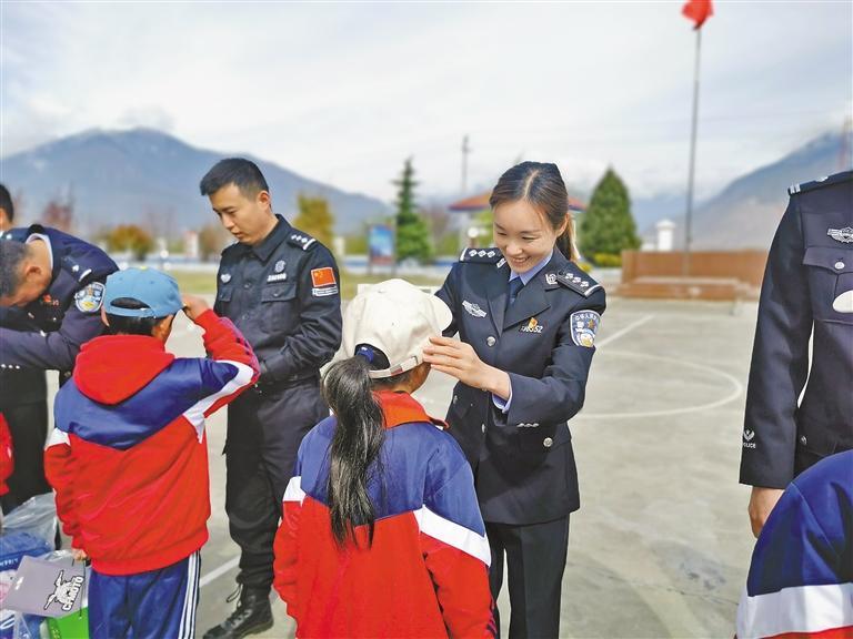 圖為羌納邊境派出所民警為結(jié)對(duì)幫扶的同學(xué)發(fā)放學(xué)習(xí)生活用品。記者 張猛 王珊 謝筱純 攝