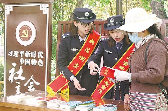 支隊民警在宗角祿康公園設立宣傳點,通過發(fā)放宣傳資料和現(xiàn)場解答等形式,以通俗易懂的語言向群眾介紹民法典概況、頒布意義,并重點對群眾關(guān)心的物權(quán)、繼承、婚姻家庭等方面內(nèi)容提供法律咨詢,引導群眾加強法律知識學習,養(yǎng)成學法、守法、用法、護法的良好習慣。