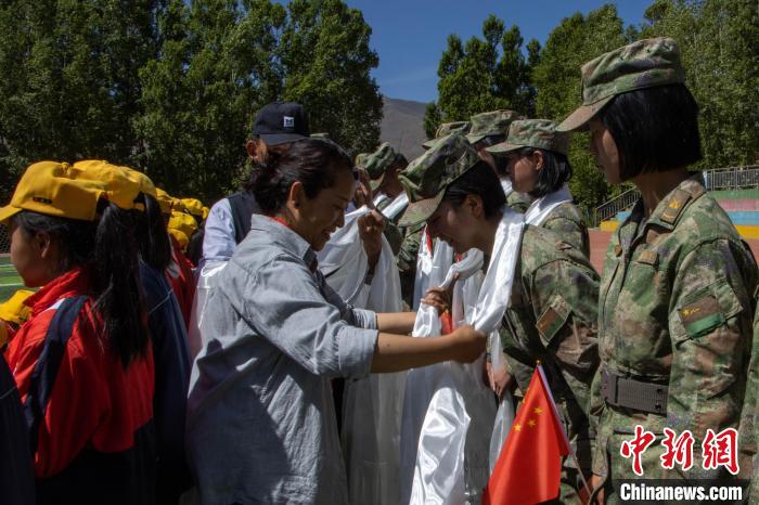 圖為該小學老師為女兵獻上哈達表示感謝?!≈煺z