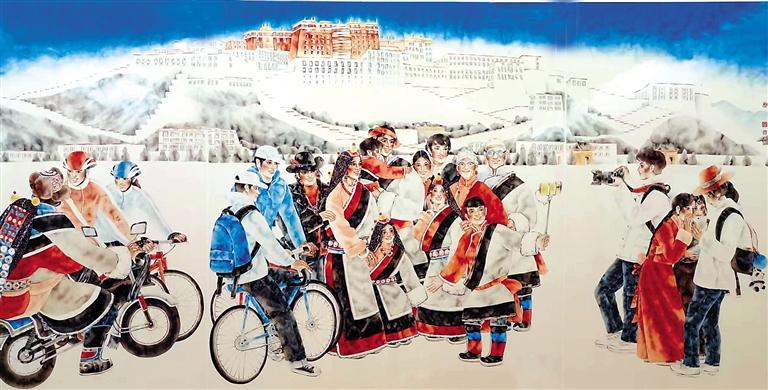 隨著一系列支持政策的持續(xù)推進(jìn)和西藏各族兒女的團(tuán)結(jié)奮斗,西藏的經(jīng)濟(jì)發(fā)展和民生水平都得到了大幅度提升。同時,關(guān)注西藏發(fā)展現(xiàn)實(shí)、進(jìn)行美術(shù)創(chuàng)作的藝術(shù)家日漸增多,一件件優(yōu)秀美術(shù)作品應(yīng)運(yùn)而生,并且在全國重要展覽中精彩呈現(xiàn),向人們?nèi)妗⒘Ⅲw地展現(xiàn)了新時代西藏人民生活的美好圖景。2022年秋季在中國美術(shù)館展出的“第13屆中國藝術(shù)節(jié):全國優(yōu)秀美術(shù)作品展覽”中,有大量表現(xiàn)西藏民族風(fēng)情和民生發(fā)展題材的美術(shù)作品,從作品構(gòu)思到藝術(shù)表現(xiàn),體現(xiàn)出鮮明的民族文化特色和民生繁榮景象,展現(xiàn)出美術(shù)創(chuàng)作者深植心底的鑄牢中華民族共同體意識創(chuàng)作理念。