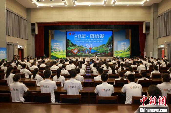 2023年廣東大學(xué)生志愿服務(wù)西部計(jì)劃出征儀式暨西部(山區(qū))計(jì)劃實(shí)施20周年主題活動(dòng)20日在廣州舉行。
