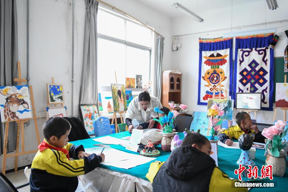 圖為那曲市特殊教育學(xué)校學(xué)生正在畫畫。貢嘎來松 攝