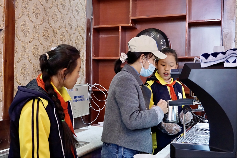 13歲的拉巴卓瑪和15歲的益西措姆正是體驗(yàn)職教班咖啡課的學(xué)生,她們相較于其他學(xué)生擁有更強(qiáng)的專(zhuān)注力和動(dòng)手能力,一天便能熟練操作咖啡機(jī)。在帶教老師次旦卓嘎看來(lái),“她們雖然是學(xué)困生,但其實(shí)看上去和普通小孩沒(méi)有什么不同?!?/p>