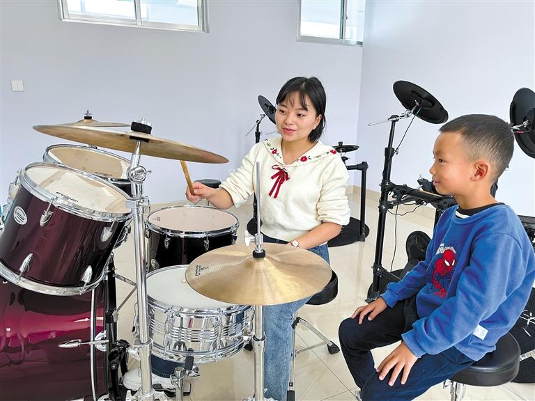 圖為少年宮學(xué)員學(xué)習(xí)架子鼓。圖/文 記者 央金