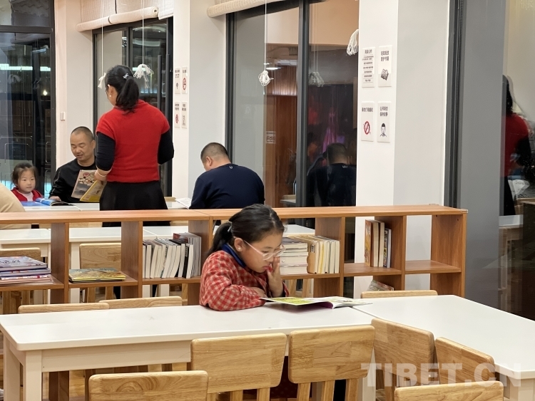 走進(jìn)蓮花書屋,一樓的書架和閱讀區(qū)幾乎坐滿了專心閱讀的大人小孩?!拔蚁矚g來公園散步,這里環(huán)境很美。前天過來散步時(shí),看到我期待已久的書屋終于可以進(jìn)去看書了。家里的書都被我看完了,所以我這兩天一寫完作業(yè)就要來這里看新的書?!蔽迥昙?jí)的德央措姆在少兒閱讀區(qū)翻看書籍,她為能夠擁有這樣的讀書環(huán)境而感到很高興。