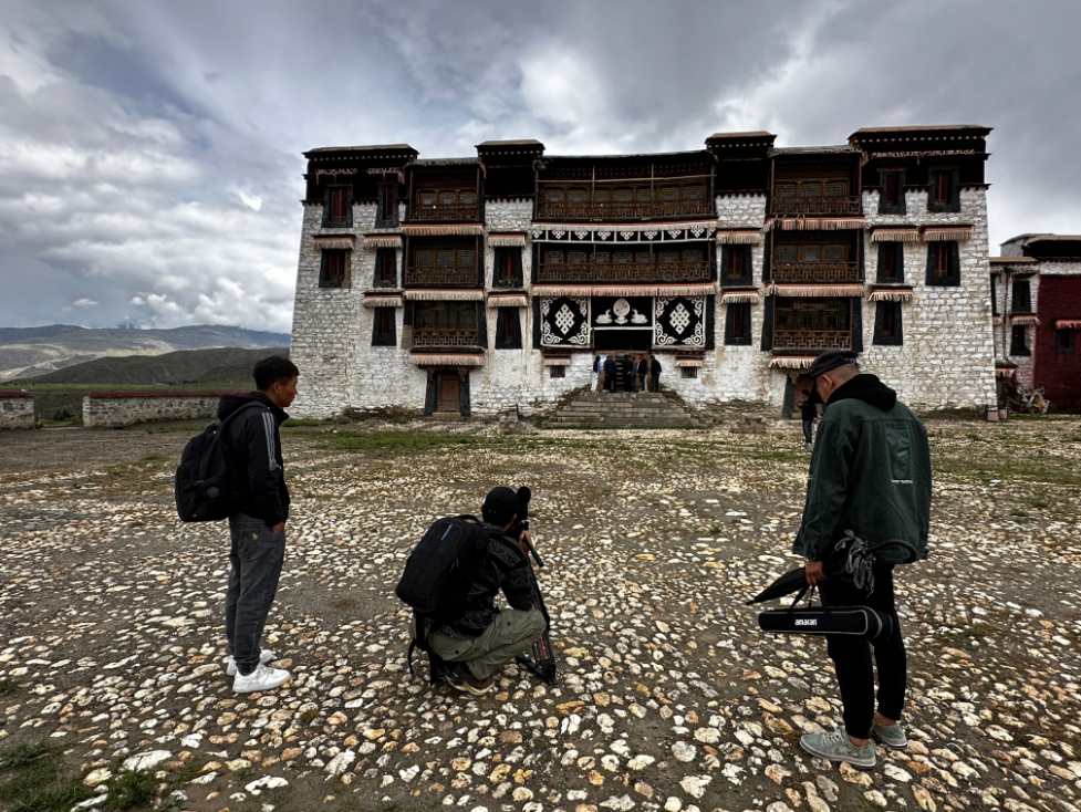 《高原文物守護者口述史》攝制團隊在古建筑遺址的工作照