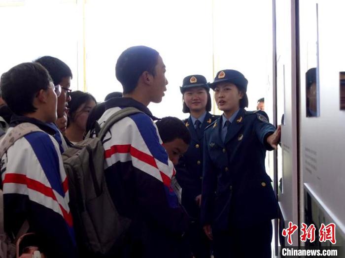 圖為拉薩江蘇中學(xué)的學(xué)生們了解空軍的歷史。拉巴卓瑪 攝