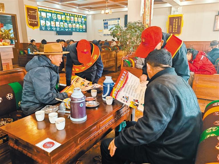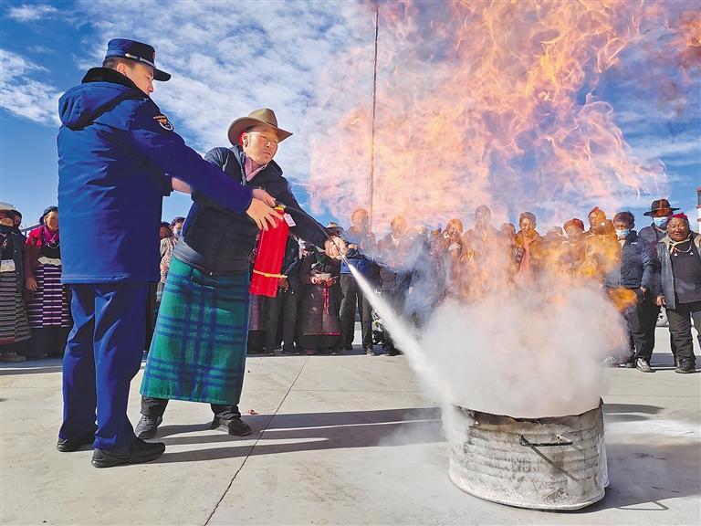活動中,隊伍各級積極制作藏漢雙語宣傳彩頁、海報、宣傳冊、宣傳袋等“消防禮包”80余萬份,聯(lián)動消防志愿者通過“走街串巷”的形式深入轄區(qū)“九小場所”、沿街門店、居民樓院等廣泛發(fā)放,并采取“面對面”宣傳講解、“一對一”互動交流等方式,向廣大群眾傳授防火基本常識,教授如何正確使用滅火器、如何撲救初起火災(zāi)、如何逃生自救等。在開展宣傳的同時,“火焰藍”和“志愿紅”還進村入戶,幫助群眾查找火災(zāi)隱患,講解隱患存在的嚴(yán)重危害性,切實提高群眾的消防安全意識和自防自救能力。