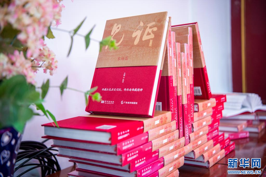 1月19日,在贈(zèng)書(shū)儀式現(xiàn)場(chǎng)拍攝的《見(jiàn)證》農(nóng)場(chǎng)篇書(shū)籍。新華網(wǎng) 旦增努布 攝