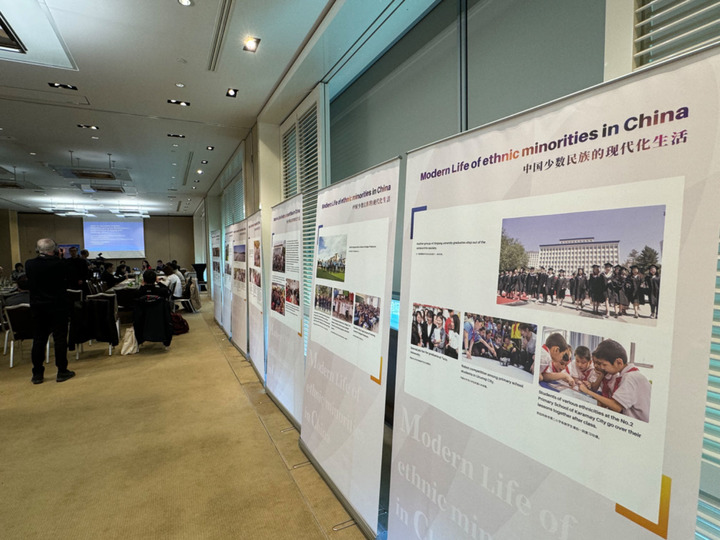 3月14日,由中國人權研究會主辦的“現(xiàn)代化發(fā)展中的少數(shù)民族受教育權——以中國西藏和新疆為例”主題邊會在瑞士日內瓦舉行。圖為會議現(xiàn)場舉辦的“中國少數(shù)民族的現(xiàn)代化生活”圖片展。新華社記者石松攝
