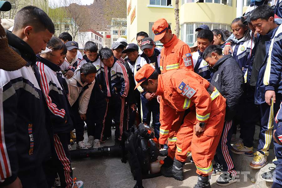 “這是風(fēng)力滅火機(jī),此款型號的風(fēng)力滅火機(jī)最高風(fēng)速最高可以達(dá)到90m/s,遇見草原火時,我們就用它來進(jìn)行滅火?!毕绬T背起風(fēng)力滅火機(jī),將裝備點(diǎn)火后對準(zhǔn)預(yù)設(shè)物進(jìn)行示范操作。在現(xiàn)場互動中,部分師生代表當(dāng)起“消防員”體驗設(shè)備操作。除了現(xiàn)場互動環(huán)節(jié),左貢縣消防人員還仔細(xì)檢查了學(xué)校的消防設(shè)施配置,并指導(dǎo)學(xué)校如何定期進(jìn)行消防自檢。