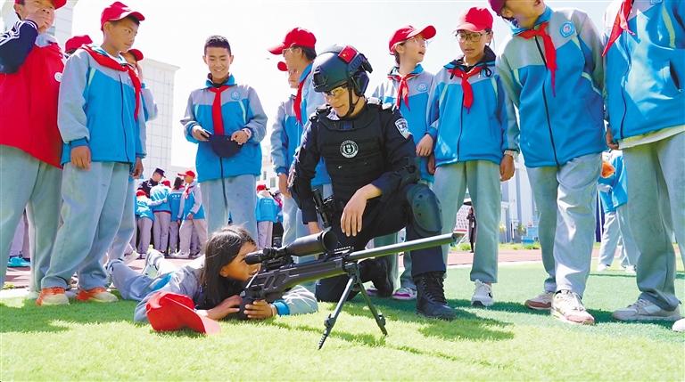 圖為巴宜區(qū)中學學生在特警隊員指導下沉浸式體驗警用裝備。惠盼宏 記者 彭琦 攝