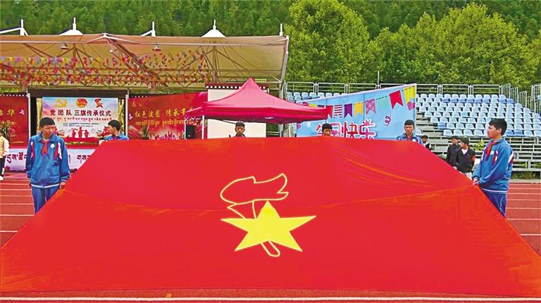黨團(tuán)隊(duì)三旗傳承儀式現(xiàn)場(chǎng)。記者 胡文 通訊員 旦珍 攝
