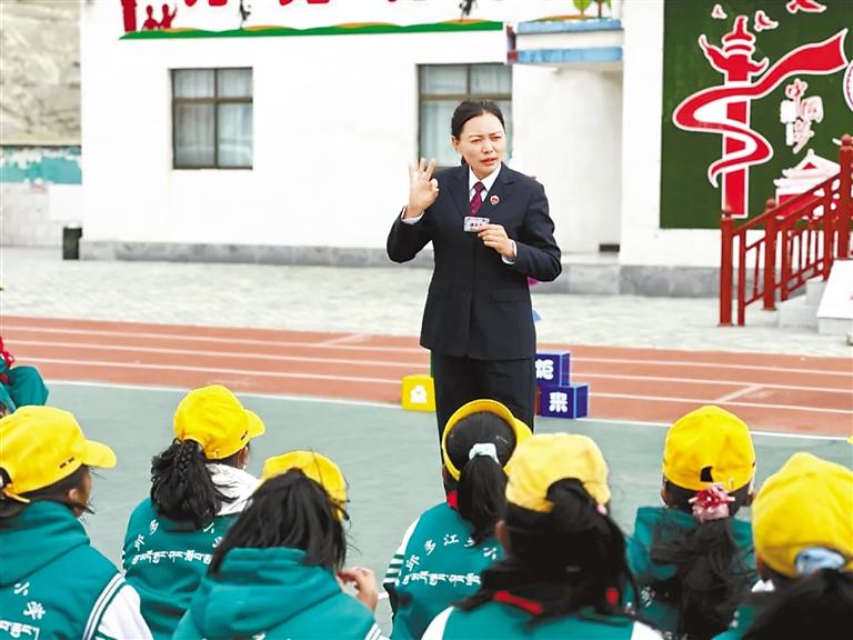 日前,曲松縣人民檢察院的檢察官在下落國(guó)家濕地公園舉行“法治小課堂”,為學(xué)生沉浸式講授濕地保護(hù)領(lǐng)域公益訴訟典型案件及政策法規(guī)。記者 丹增平措 攝