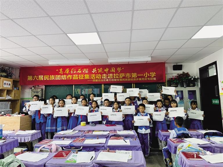 為進(jìn)一步豐富第六屆民族團(tuán)結(jié)書法、美術(shù)、攝影、微視頻作品征集活動的內(nèi)容和形式,弘揚(yáng)傳統(tǒng)文化,激發(fā)學(xué)生對書法藝術(shù)的熱愛之情,7月5日下午,由西藏自治區(qū)著力創(chuàng)建全國民族團(tuán)結(jié)進(jìn)步模范區(qū)專項組主辦,西藏自治區(qū)黨委宣傳部、西藏自治區(qū)民族事務(wù)委員會協(xié)辦,西藏傳媒集團(tuán)有限公司承辦的第六屆民族團(tuán)結(jié)書法、美術(shù)、攝影、微視頻作品征集活動走進(jìn)拉薩市第一小學(xué),為同學(xué)們帶來了一堂生動的藏文書法課。