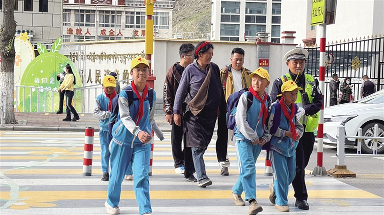 此外,拉薩交警還利用每日“護學(xué)崗”時間,主動引導(dǎo)學(xué)生正確過馬路、認識交通信號燈,提醒學(xué)生不在馬路上嬉戲、追逐打鬧,不乘坐三輪摩托車等不規(guī)范車輛,并向接送學(xué)生的家長講解接送孩子途中應(yīng)注意的安全事項,告誡學(xué)生家長以身作則,杜絕橫穿馬路、闖紅燈等交通陋習,共同營造安全、暢通、文明和諧的道路交通環(huán)境?!拔覀児膭詈⒆觽儗W(xué)到的交通安全知識帶回家,充分發(fā)揮‘小手拉大手’作用,向家人宣傳道路交通安全知識,強化家長、學(xué)生安全意識和自我保護意識。”馬定雄說。