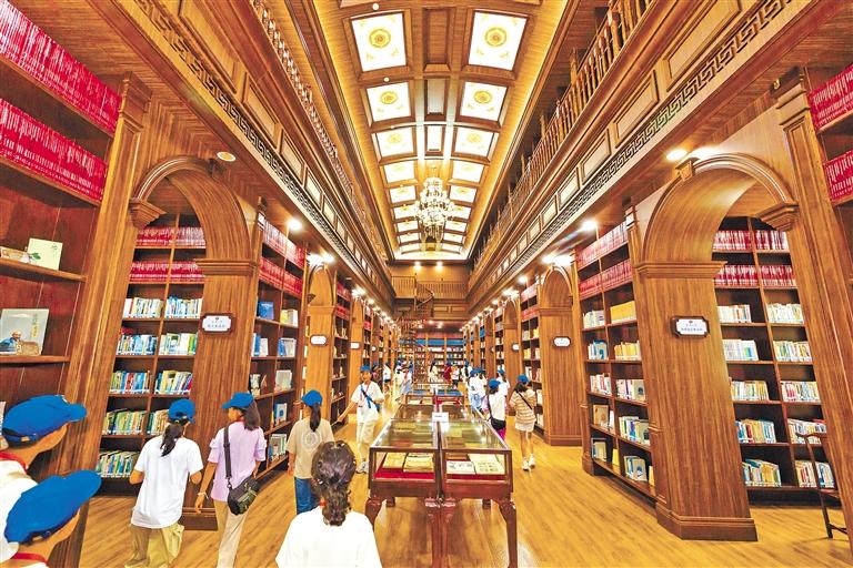 圖為營(yíng)員們參觀武漢大學(xué)圖書館。