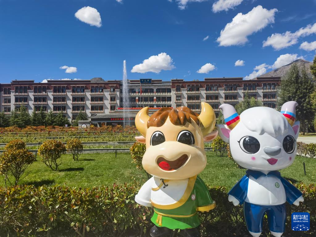 圖為拉薩北京實(shí)驗(yàn)中學(xué)學(xué)生自己設(shè)計(jì)的校園吉祥物“牛小特”和“小京羚”。 新華社記者舒靜 攝