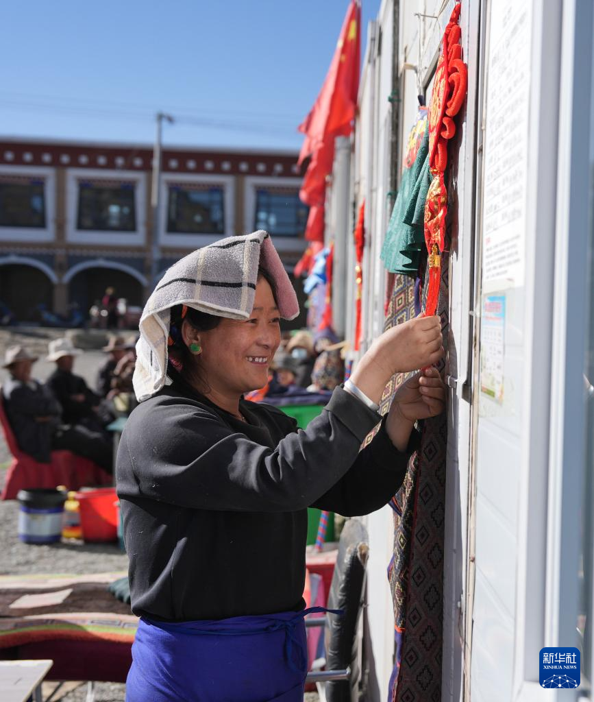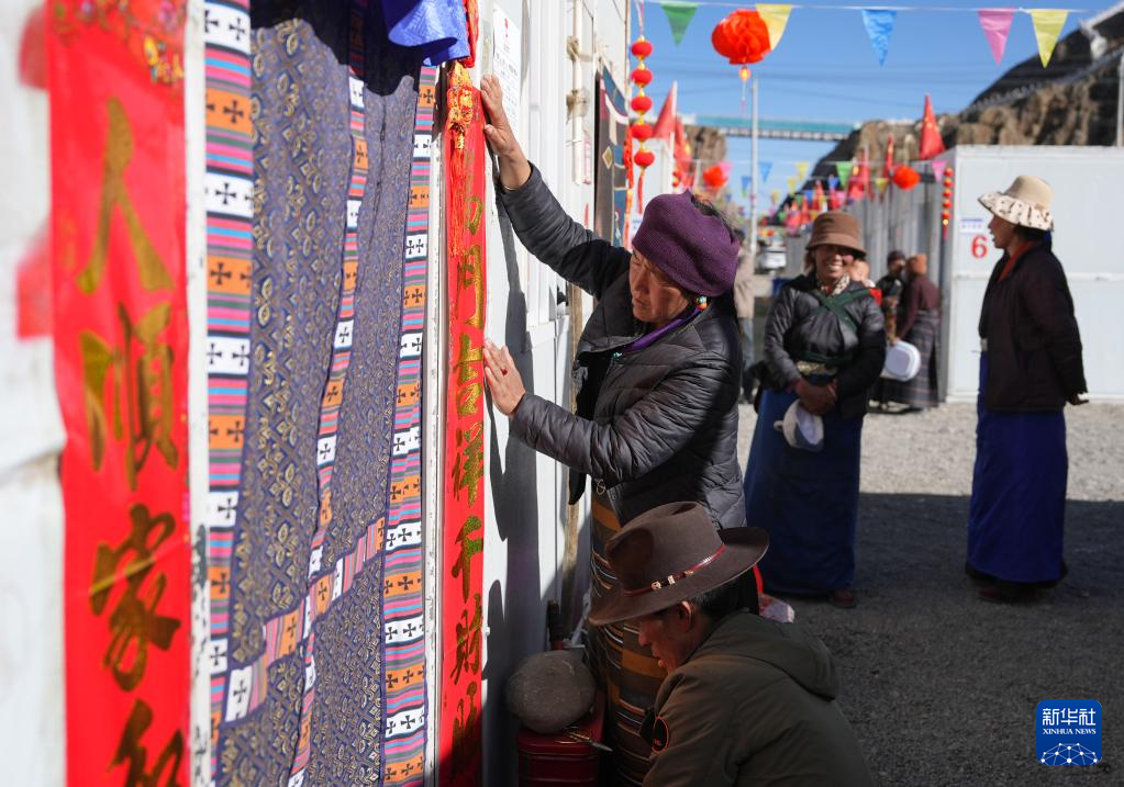 1月26日,拉孜縣吉如村安置點(diǎn)群眾在掛吉祥結(jié)。新華社記者 晉美多吉 攝