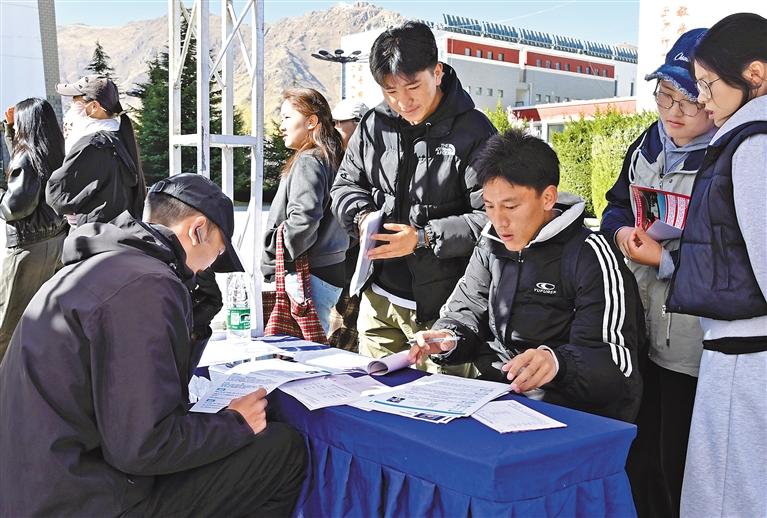 近日,由拉薩市人力資源和社會保障局主辦,西藏大學、西藏民族大學協(xié)辦的2025年全國城市聯(lián)合招聘高校畢業(yè)生春季專場活動在西藏大學納金校區(qū)舉行。招聘會提供了文秘、出納、會計、醫(yī)輔、客服等1650個崗位,吸引了不少學生前來應聘。