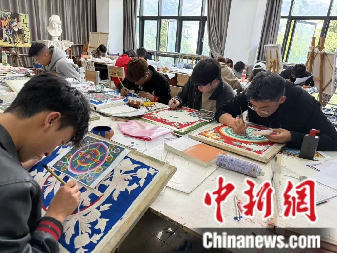 圖為學(xué)生在上藏畫課。西藏大學(xué)供圖