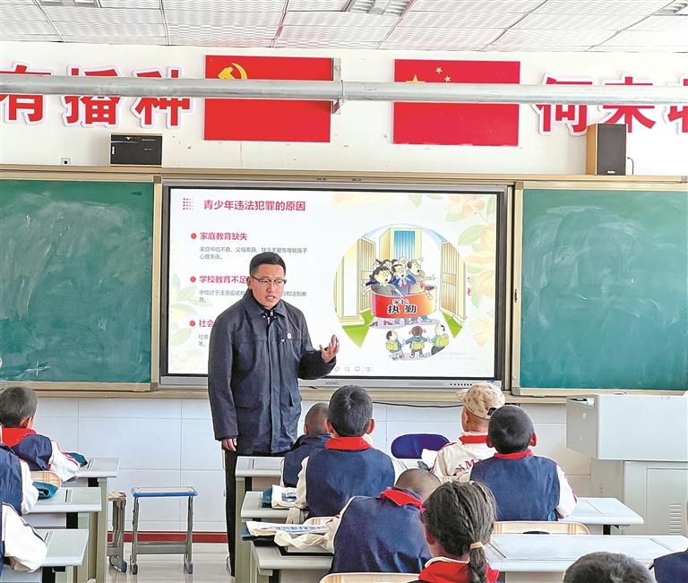 圖為色尼區(qū)法院干警在學校講法治課。記者 彭琦 攝