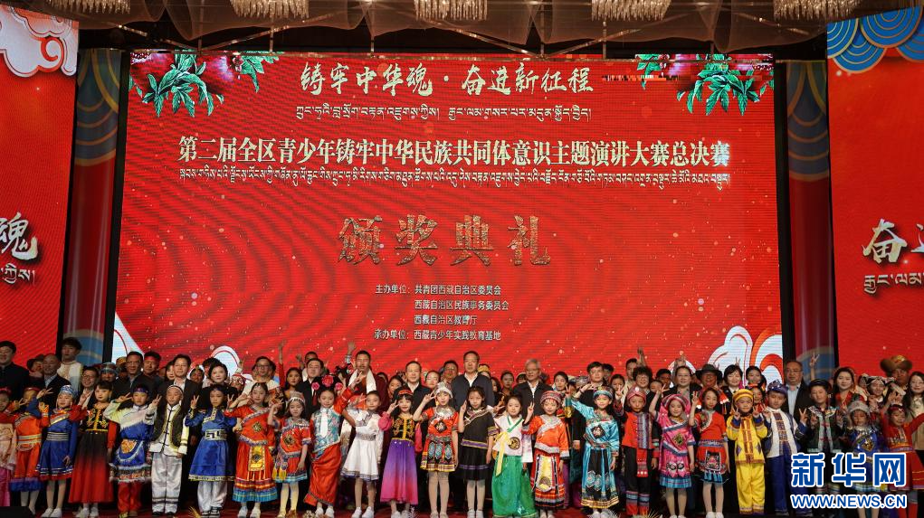這是第二屆西藏青少年鑄牢中華民族共同體意識(shí)主題演講大賽總決賽的頒獎(jiǎng)典禮(5月25日攝)。新華社記者 劉洲鵬 攝