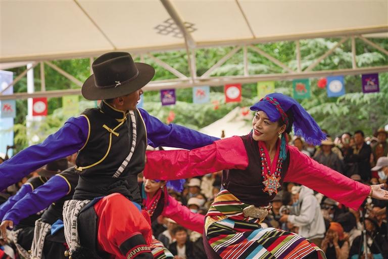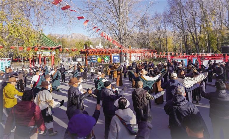 如今,隨著城鎮(zhèn)化發(fā)展,鍋莊漸漸融入人們的日常生活,成為很多人晨練和廣場舞的首選,刷新著人們對于傳統(tǒng)廣場舞的認識?!拔覀兠褡宓膫鹘y(tǒng)舞蹈‘鍋莊’從農牧區(qū)跳到城市,跳進了大眾的日常生活,我感到很自豪。”來自那曲市的德慶卓瑪說。