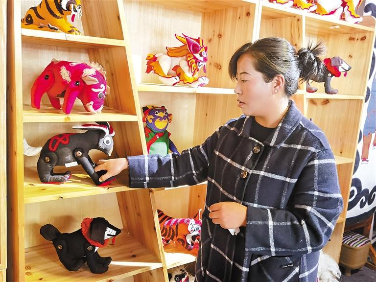工作人員展示手工編織的十二生肖玩偶。 記者 王敏 攝