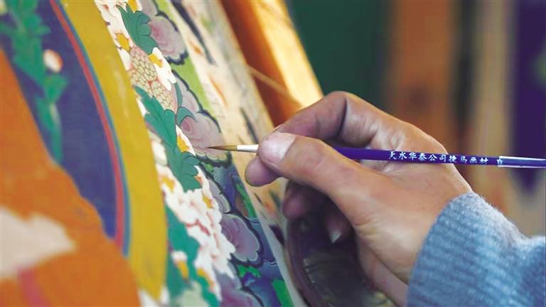 屋內,是他伏案繪制唐卡的專注身影;身旁,是父母欣慰的目光與陪伴?!白詮膶W會了唐卡繪畫后,我一直在拉薩就業(yè)謀生,但由于家里有年邁的父母需要照顧,我就回到家里一邊照顧父母,一邊繪畫定制的唐卡。這樣不僅有穩(wěn)定的收入,還能像其他人一樣靠自己的雙手過上幸福的生活?!蹦岈敶稳始拥馗嬖V記者,他的話語中充滿了對生活的感恩和對未來的信心。