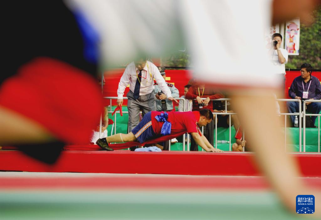 11月27日,貴州隊(duì)選手張仁信在55公斤級(jí)決賽中。他戰(zhàn)勝重慶隊(duì)選手王珍寬,獲得一等獎(jiǎng)。當(dāng)日,第十二屆全國(guó)少數(shù)民族傳統(tǒng)體育運(yùn)動(dòng)會(huì)押加項(xiàng)目55、61、68、76、85公斤級(jí)五個(gè)組別的決賽在海南省三亞市舉行。新華社記者 周牧 攝