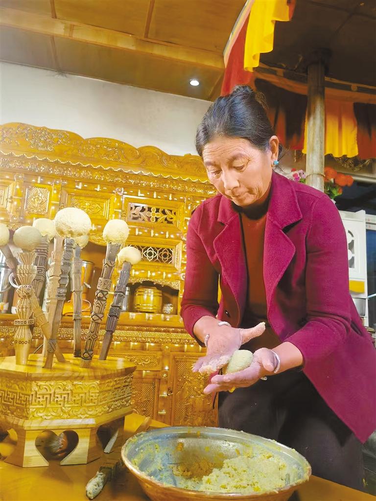 “切瑪”送祝福,客人新年期間做客工布家庭,主人會端出象征人壽年豐的切瑪迎接貴客,祝愿他們來年平安順?biāo)欤?/p>