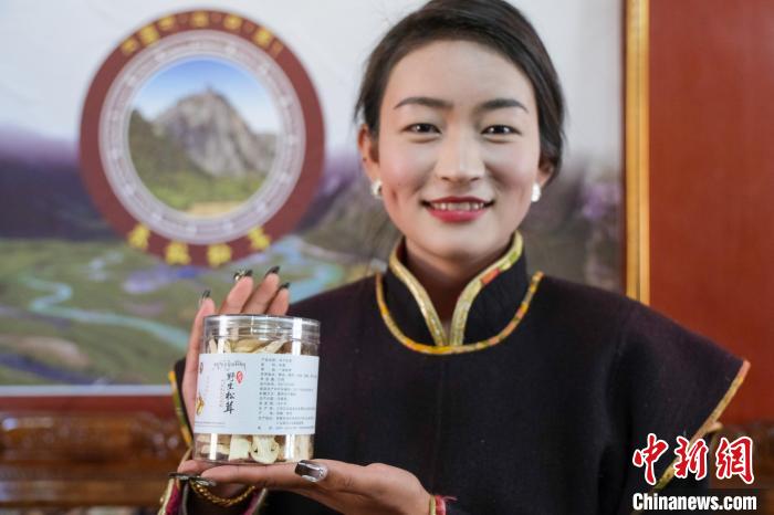 圖為12月12日,朱拉松茸加工農民專業(yè)合作社職工白瑪康珠展示合作社的松茸產品。記者 江飛波 攝