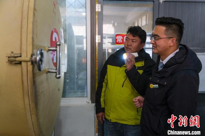 圖為12月12日,中國農業(yè)銀行工布江達縣支行綜合部經理王南(右)在合作社了解生產經營情況。記者 江飛波 攝