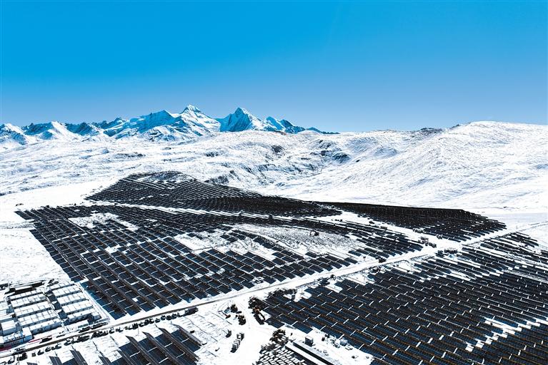 圖為華電西藏才朋光儲(chǔ)二期項(xiàng)目光伏場(chǎng)區(qū)全景一覽。 記者 袁海霞 鄭璐 攝