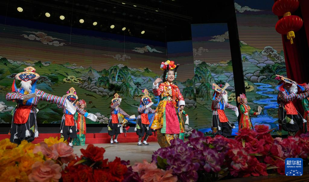 12月28日晚,西藏自治區(qū)群藝館藏戲常態(tài)班的少年表演傳統(tǒng)藏戲《蘇吉尼瑪》。新華社記者 晉美多吉 攝