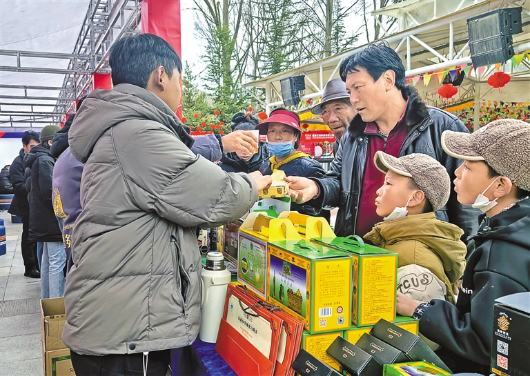 圖為市民在宗角祿康公園內(nèi)購買低氟健康茶。記者 洛?!z