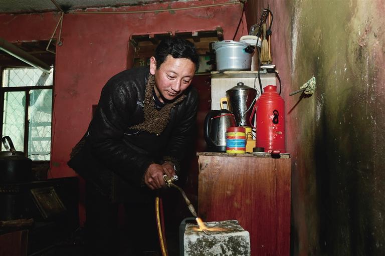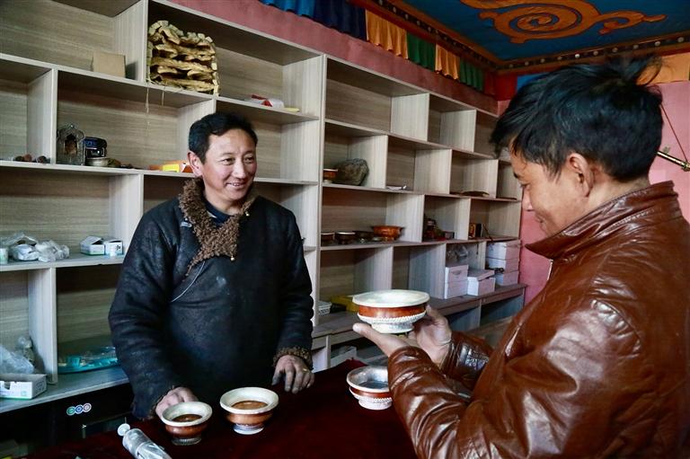 43歲的次央多吉是墨竹工卡縣級(jí)非物質(zhì)文化遺產(chǎn)阿吉祖玉傳承人。這份傳承的使命,自他的祖輩起便已延續(xù)。在他的記憶中,長輩們熟練掌握這項(xiàng)非遺技藝的身影,深深烙印在他的心中?!鞍⒓嬗袷亲嫦葌飨聛淼臇|西,不能丟?!北е@樣堅(jiān)定的想法,次央多吉在年少時(shí)便立下決心,要將這門技藝傳承下去,并不斷發(fā)揚(yáng)光大。