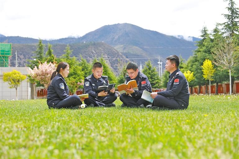 圖為林芝邊境管理支隊(duì)機(jī)關(guān)民警圍坐在一起讀書(shū)。 記者 彭琦 通訊員 張力 攝