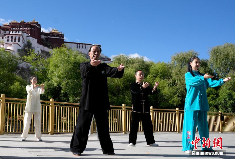 隨著盧氏太極拳在拉薩設(shè)立傳承中心,鼓勵(lì)更多人積極參與到太極拳這項(xiàng)有益身心健康的運(yùn)動(dòng)中來(lái),西藏民眾打太極拳的身影越來(lái)越多。西藏屬于高原缺氧地區(qū),太極拳作為一種內(nèi)外兼修、柔和緩慢、剛?cè)岵?jì)的中國(guó)傳統(tǒng)拳術(shù),適宜高原地區(qū)民眾練習(xí)。圖為5月13日,民眾在位于布達(dá)拉宮腳下宗角祿康公園內(nèi)打太極拳。中新社記者 李林 攝