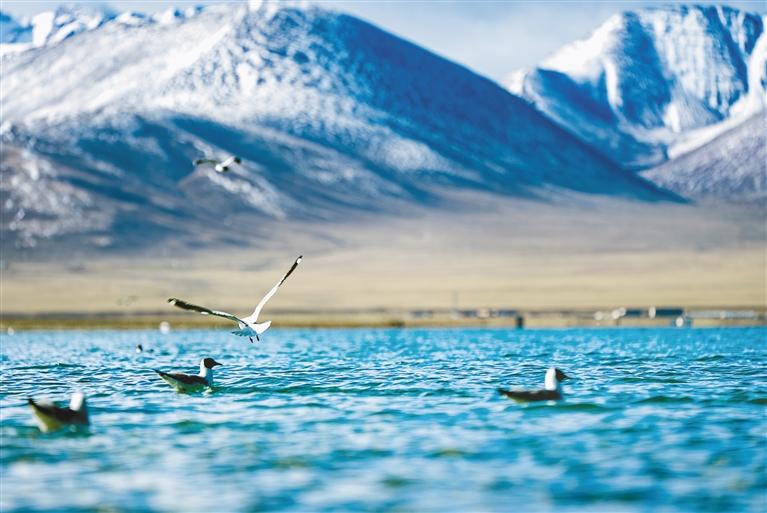 納木錯的棕頭鷗。記者 阿旺尼瑪 貢曲羅杰 攝